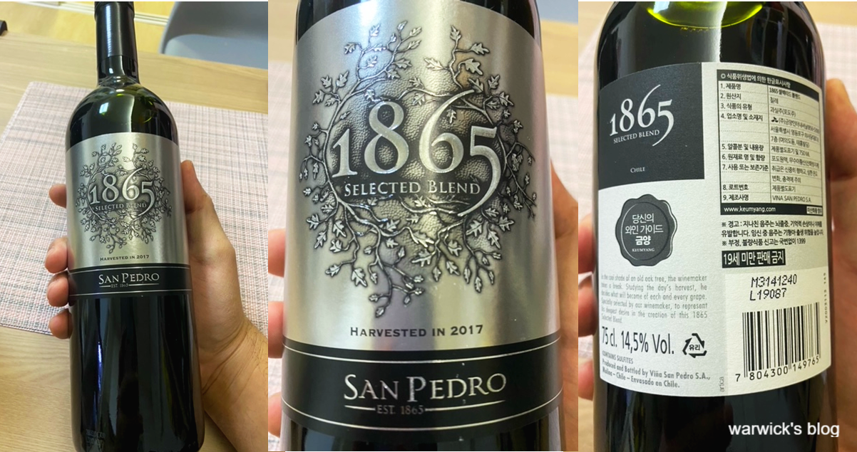 난 10만원 넘어가는 와인을 이 블로그에 매우 한정적으로 포스팅 할 예정이다. 와인 가지고 현학적 허세 떨 필요도 없고 비싸다고 다 풍미가 깊지도 않다. 요즘은 제 값 못하는 보르도 와인이 여기저기 판을 치고 있기에.. 그런건 포스팅 안함. 우리는 역시 가성비 와인, 마트 와인 추천, 와린이들을 위한 와인 이런걸 또 좋아하지 않는가. 옆으로 좀 샜는데.. 암튼 이 1865 셀렉티드 블렌드 정말 물건이다. 왜 대단한 와인인지 하나 하나 썰을 풀어보도록 함.