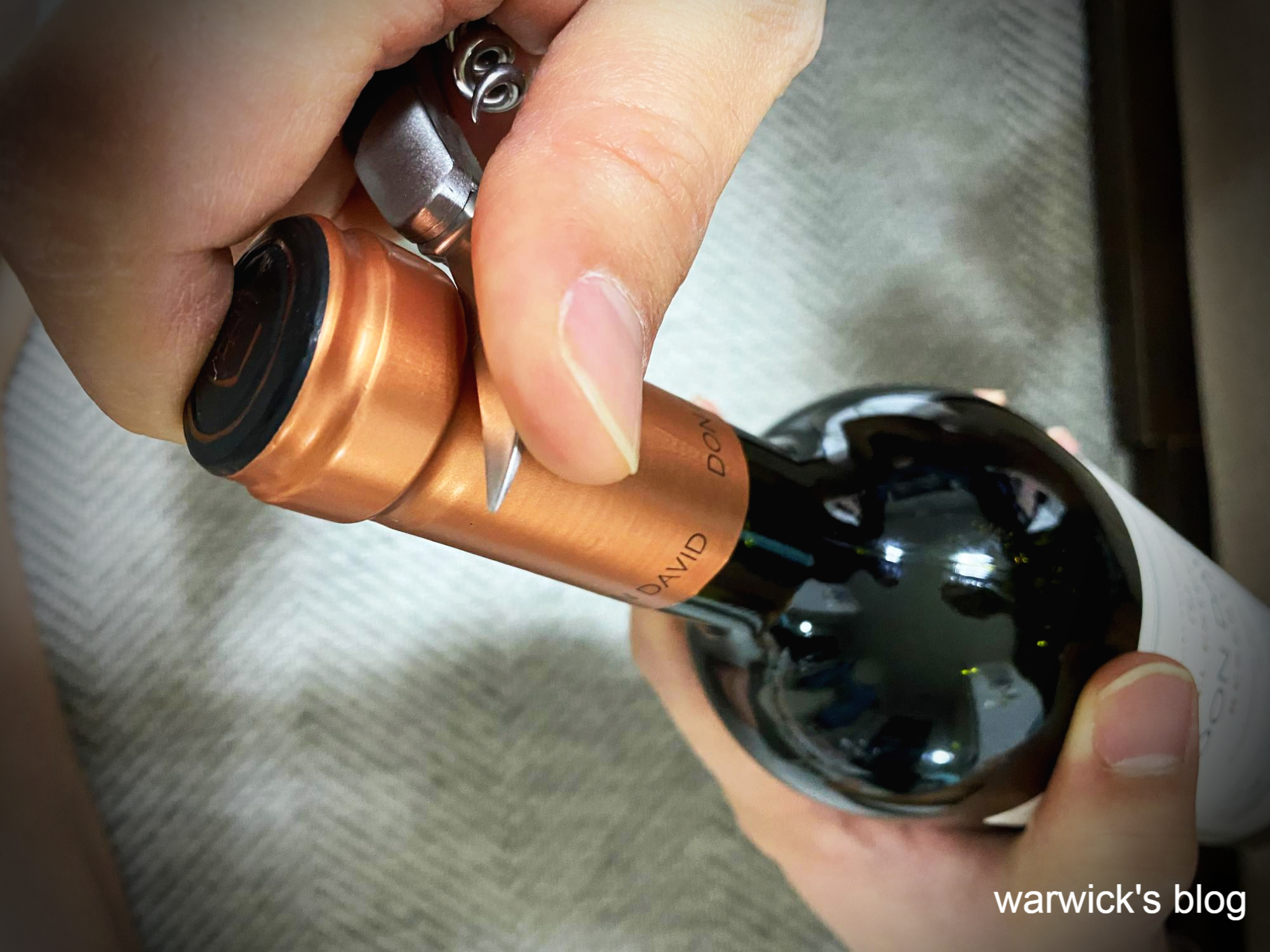 손은 고정한 채 와인 보틀 자체를 돌리는게 안전하고 쉽다. 이건 취향.